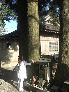 と、真印先生がいとおしむように手をかざすそこは、ため池の畔にそびえる3本の杉の巨木。根元の辺りに小さな祠が安置されている。