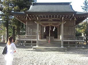 高原特有のやや殺風景な景色の中、こんもりと緑の茂るそこは、赤い鳥居と背景に溜池を持つ何の変哲もない神社。