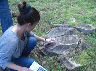 目の前には、未だ雑然としたままの杉木立の中に明らかに人工的と思える石組や石畳が点在しています。