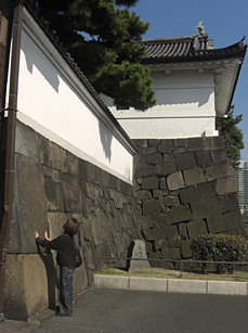 と、嬉しげに手招きするそこは、和田倉門から皇居外苑を横切り、向こうに宮内庁舎の見える坂下門の手前のお堀端。その松の木の下に立つと、確かに他の場所より涼やかな感じがしました。
