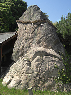 弥生時代の信仰の対象であったとされる(同町教育委員会)メンヒル(高さ5m地下2m周囲25m)は生名島の石ではなく、なんとどこからか海上運搬されてきたらしいのです。その威容は、当時の信仰の深さを表しているようにも思われました。そんなメンヒルの聳える立石山(標高139m)は生名島の北端にあり、まるでピラミッドのように綺麗な円錐形をしております。古くから霊場として敬われている山腹の祠の組み石を前に、