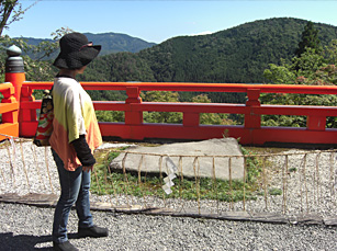 境内前庭から、遠く叡山の山並みを見ていた真印先生から「こっちに来て」の一言。